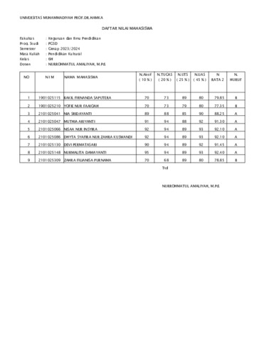 Nurrohmatul, Amaliyah Nilai, Presensi , BAP Pendidikan Kultural 6H. UHAMKA. (Unpublished)