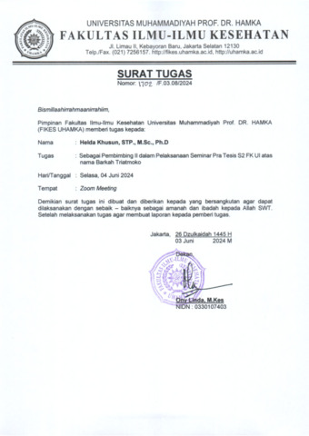 Khusun, Helda Seminar pra tesis Barkah. Program Studi Gizi, Universitas Muhammadiyah Prof. Dr. Hamka. (Submitted)