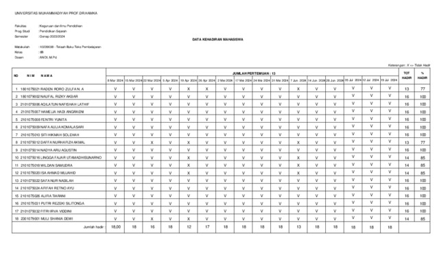 Andi, Andi SK Mengajar MK Telaah Buku teks 6b, daftar hadir, nilai dan berita acara. Uhamka. (Unpublished)