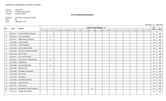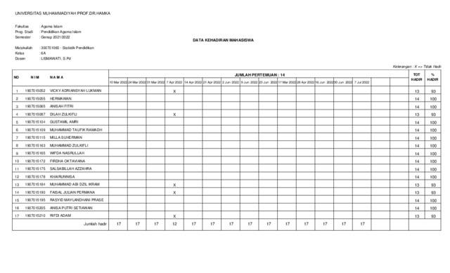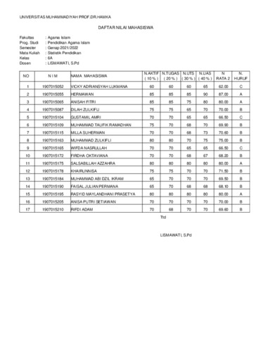 lismawati, lismawati BAP, Nilai, Presensi. Universitas Muhammadiyah Prof. Dr. HAMKA. (Unpublished)