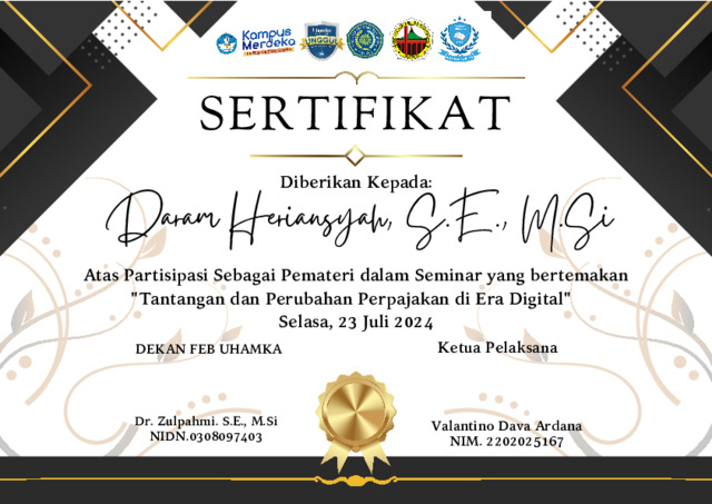 Heriansyah, Daram SERTIFIKAT SEMINAR PKM. Uhamka. (Unpublished)