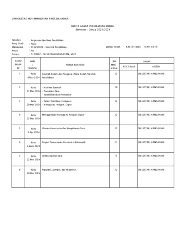 Handayani, Sri Lestari BAP, Presensi, Nilai Statistik Pendidikan 4D Genap 2023-2024. Universitas Muhammadiyah Prof. DR. HAMKA. (Unpublished)