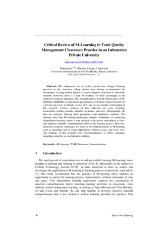 lismawati, lismawati (2020) Critical Review of M-Learning in Total Quality Management Classroom Practice in an Indonesian Private University. International Association of Online Engineering, 14 (20). pp. 76-90. (Unpublished)