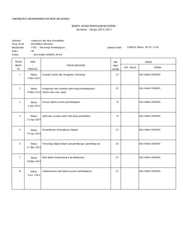 Eka Nana Susanti, ENS Bap, Kehadiran dan nilai Matkul Teknologi Pembelajaran. Prodi Pendidikan Ekonomi. (Unpublished)