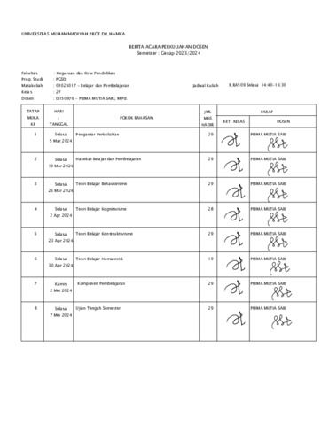 Prima, Mutia Sari BAP, Daftar Hadir, Daftar Nilai Belajar dan Pembelajaran Kelas 2F. Universitas Muhammadiyah Prof. DR. HAMKA. (Unpublished)