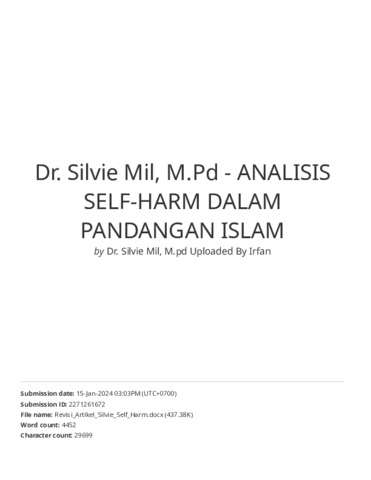 Dr. Silvie Mil, M.Pd - ANALISIS SELF-HARM DALAM PANDANGAN ISLAM (1).pdf Download (3MB) | Preview |