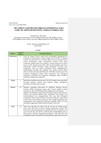 Chandra Dewi S., CDS PELATIHAN ASESMEN KECERDASAN EMOSIONAL PADA GURU TK AISYIYAH BUSTANUL ATHFAL PANDEGLANG. Jurnal SOLMA.