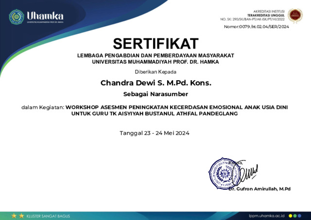 Chandra Dewi S., CDS Sertifikat narasumber PkM Pandeglang -Mei 2024. Universitas Muhammadiyah Prof. DR. HAMKA. (Unpublished)