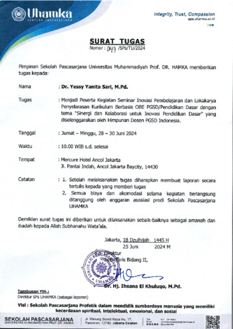 Sari, Yessy Yanita Peserta Kegiatan Seminar Inovasi Pembelajaran dan Lokakarya Penyetaraan Kurikulum berbasis OBE PGSD, Pendidikan Dasar dengan Tema " Sinergi dan Kolaborasi untuk Inovasi Pendidikan Dasar". [Show/Exhibition]