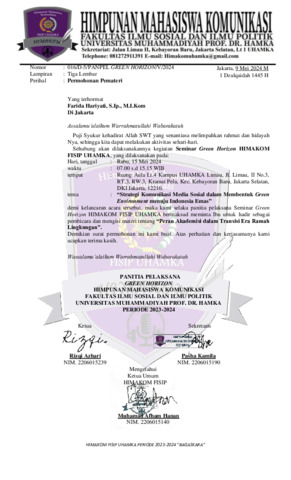 Farida, Hariyati Dokumen Pengabdian Masyarakat sebagai Narasumber Seminar Green Horizon Himakom FISIP UHAMKA. universitas muhammadiyah prof. dr. hamka. (Unpublished)