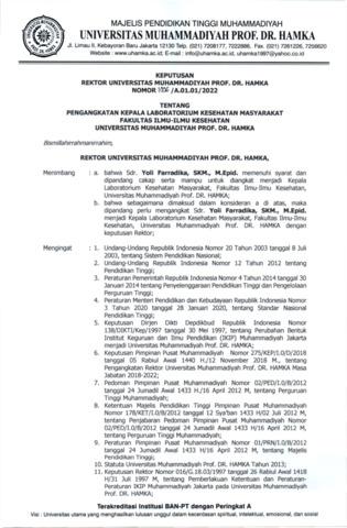 Farradika, Yoli SK Kepala Laboratorium Prodi Kesmas. Universitas Muhammadiyah Prof. Dr. Hamka.