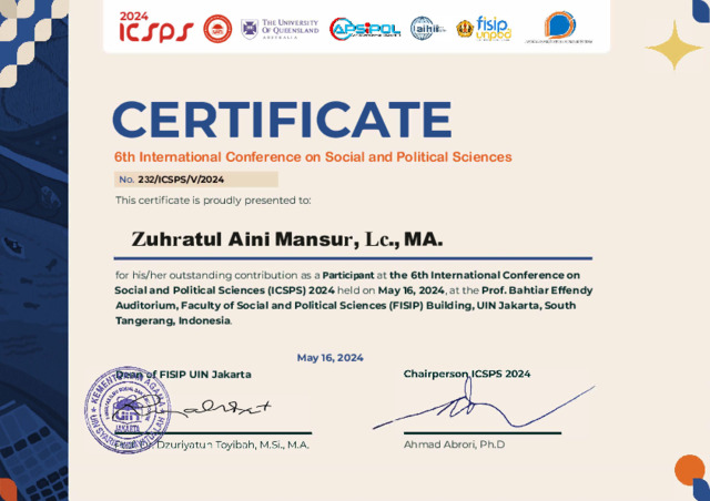 Sertipikat ICSPS - Peserta-Zuhratul Aini Mansur MA.pdf Download (4MB) | Preview |
