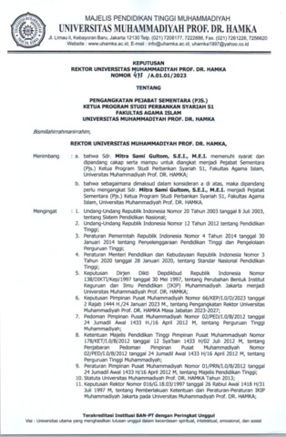 Gultom, Mitra Sami SK PENGANGKATAN PJS KAPRODI PERBANKAN SYARIAH an.MITRA SAMI GULTOM. UHAMKA.