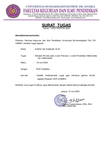 Awalludin, Subhan Ajiz Surat Tugas Publikasi Artikel MaPan. Universitas Muhammadiyah Prof DR Hamka. (Unpublished)