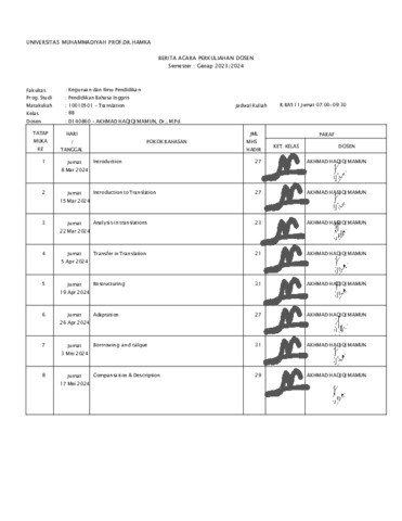 AKHMAD, Haqiqi Translation BAP, Kehadiran , Nilai dan SK. Universitas Muhammadiyah Prof. Dr. HAMKA. (Unpublished)