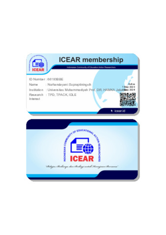 Supraptiningsih, Nurhandayani Membership ICEAR. [Artefact]