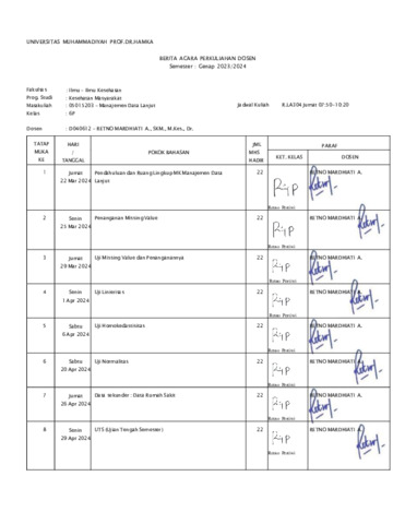 Retno Mardhiati A, Dr. Bukti Mengajar MK Managemen Data Lanjutan Kelas 6P Genap 2023- 2024. Universitas Muhammadiyah Prof. Dr. Hamka. (Unpublished)