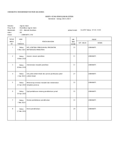 lismawati, lismawati BAP, KEHADIRAN, NILAI METODE PENELITIAN 6D GENAP 2023-2024. Universitas Muhammadiyah Prof. Dr. HAMKA. (Unpublished)