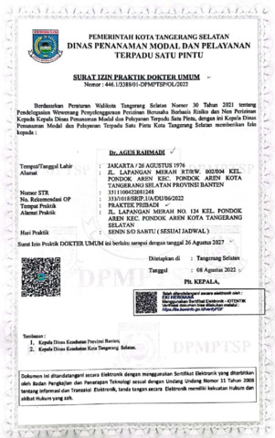 Agus Rahmadi, Agus SIP KLINIK PONDOK AREN DAN SERPONG. Fakultas Kedokteran Uhamka.