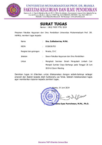 Zulfadewina, Zulfadewina Surat Tugas dan Sertifikat ECOEDU Webinar. ECOEDU Pusat Pelatihan Lingkungan.