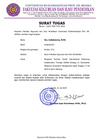 Zulfadewina, Zulfadewina Surat Tugas dan Sertifikat Enhancing Collaboration Through ASEAN Strategy Webinar. MINISTRY OF ENVIRONMENT AND FORESTRY OF THE REPUBLIC OF INDONESIA.