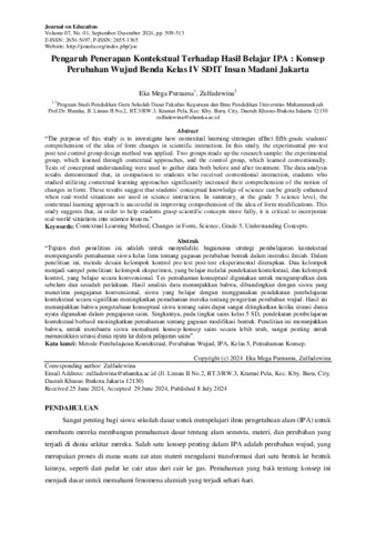 Pengaruh Penerapan Kontekstual Terhadap Hasil Belajar IPA.pdf - Published Version Download (415kB) | Preview |