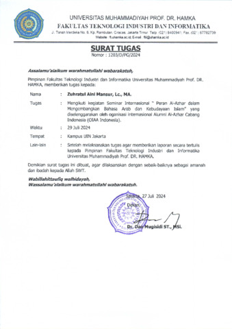 5. 29 Juli 2024, Seminar Internasional w Peran Al-Azhar dalam Mengembangkan Bahasa Arab dan Kebudayaan Islam" yang diselenggarakan oleh oganisasi internasional Alumni Al-Azhar Cabang Indonesia (OIAA Indonesia).