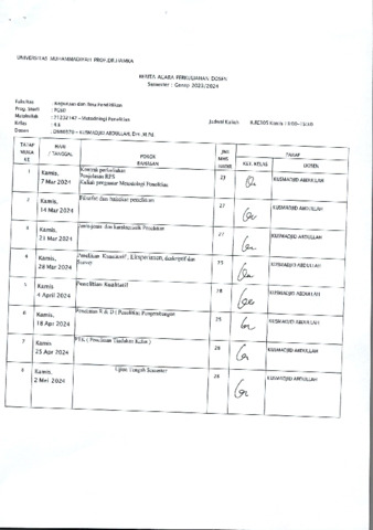 Kusmajid, Kusmajid BAP, Presensi, Nilai Kusmajid MetLit 4E Genap 2023-2024. Universitas Muhammadiyah Prof. DR. HAMKA. (Unpublished)