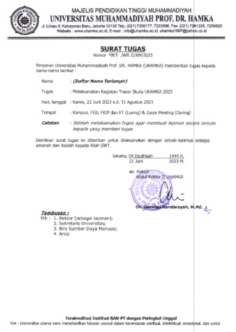 rahmanto, arifin Surat tugas panitia tracer study 2023. UHAMKA.