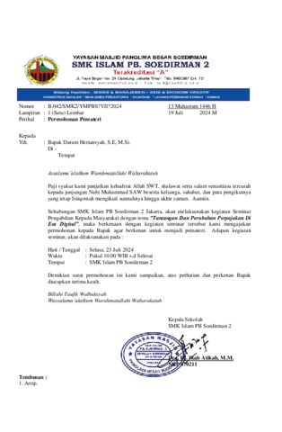 Heriansyah, Daram (2024) Surat Undangan Workshop SMK PB Soedirman 2. Uhamka.