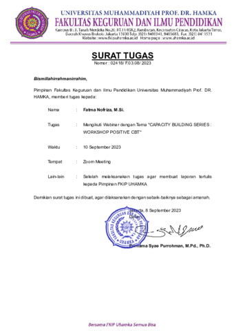 Fatma Nofriza, Fatma Peserta Capasity building series. Universitas Muhammadiyah Prof Dr. Hamka. (Unpublished)