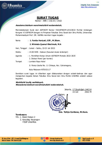 Khotimah, Wininda Qusnul Surat tugas ASPIKOM 2022. UHAMKA.