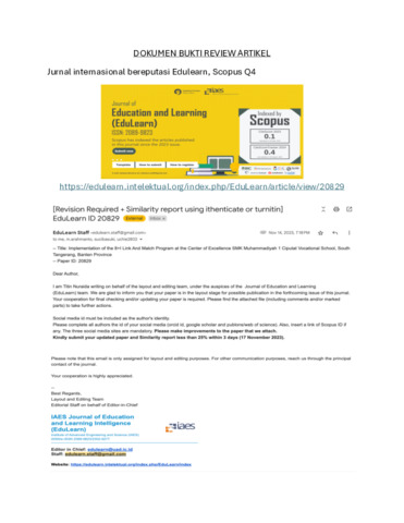 Sintha Wahjusaputri, Sintha Bukti Review Artikel dan Turnitin pada judul Implementation of the 8+ i link and match vocational school program di jurnal JEdu&Learn. UHAMKA.