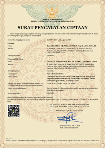 Akbari, Deni Community Service: The Role Of SME Digitalization Strategies In Improving The Performance Of National SME’s (Uhamka X Bank Indonesia Representative In Beijing, China). Uhamka.