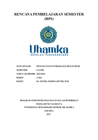 Sintha Wahjusaputri, Sintha RPS MK PENULISAN DAN PUBLIKASI KARYA ILMIAH. UHAMKA.