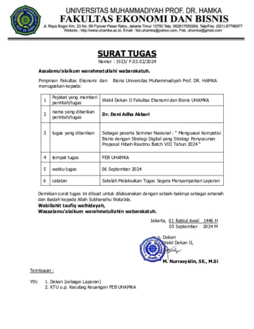 Akbari, Deni Strategi Penyusunan Proposal Hibah Risetmu Batch VIII Tahun 2024. Uhamka.