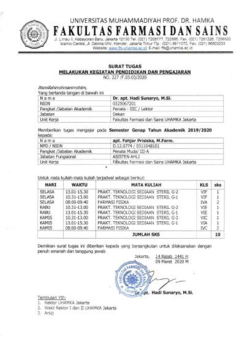 Fahjar Prisiska, Fahjar Pengajaran Semester Genap Tahun 2019 - 2020. Universitas Muhammadiyah Prof. DR. HAMKA. (Unpublished)