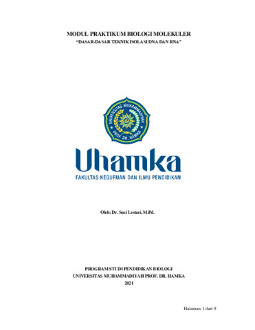 Suci Lestari, SLE MODUL PRAKTIKUM BIOLOGI MOLEKULER: DASAR-DASAR TEKNIK ISOLASI DNA DAN RNA. [Teaching Resource] (Unpublished)