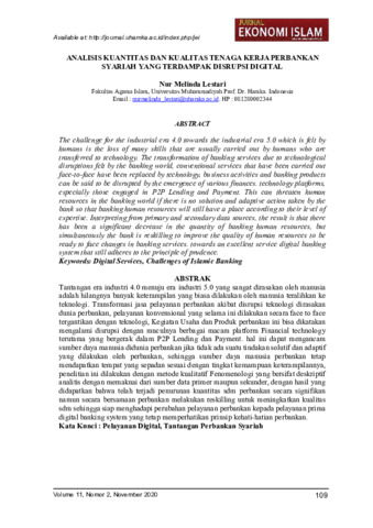 Lestari, Nur Melinda Artikel di Jurnal Ekonomi Islam Terbit Tahun 2020. Nur Melinda Lestari.