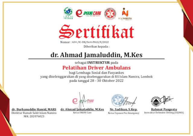AHMAD JAMALUDDIN, AHMAD Sertifikat InstrukturPel Ambu Lombok dr. Jamal. Fakultas Kedokteran Uhamka.