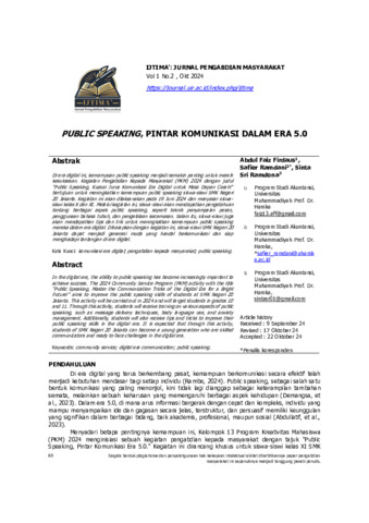 Jurnal PKM_PUBLIC SPEAKING, PINTAR KOMUNIKASI DALAM ERA 5.0.pdf Download (532kB) | Preview |