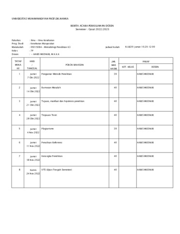 Muzakir, Haris Bukti Kinerja Pengajaran Metodologi Penelitian K3 kelas 7P. Fikes Uhamka.