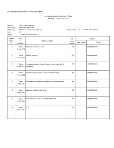 Muzakir, Haris Bukti Kinerja Pengajaran MK Promosi Kesehatan Pekerja. Fikes Uhamka.
