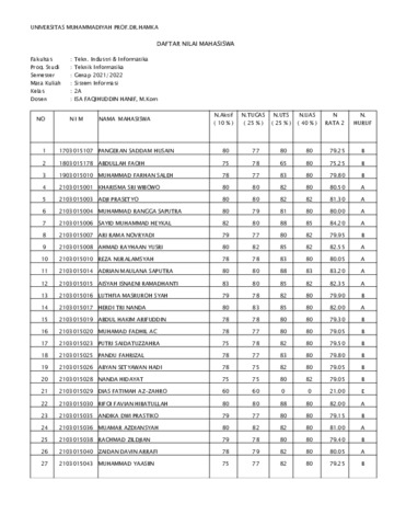Isa Faqihuddin Hanif, Isa BAP, Kehadiran, Nilai - Sistem Informasi 2A_merged. [Teaching Resource]
