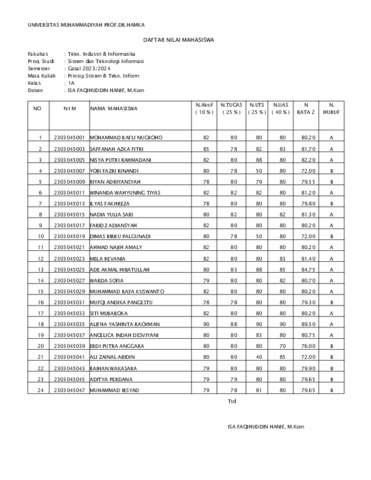 Isa Faqihuddin Hanif, Isa BAP, Kehadiran, Nilai - Prinsip Sistem dan Teknologi Informasi 1A_merged. [Teaching Resource]