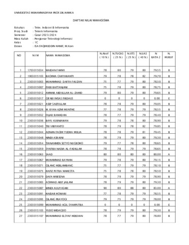 Isa Faqihuddin Hanif, Isa BAP, Kehadiran, Nilai - Pengantar Teknologi Informasi 1C_merged. [Teaching Resource]