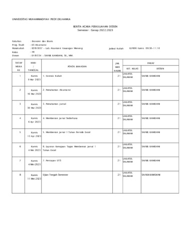 Safier Ramdani, Safier Daftar Pengajaran BKD Genap 2022 2023. Uhamka.
