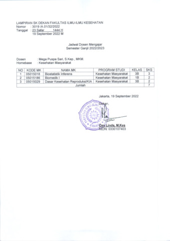 MEGA, PUSPA SARI Bukti Perkuliahan MK Dasar Biomedik. UHAMKA. (Unpublished)