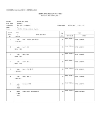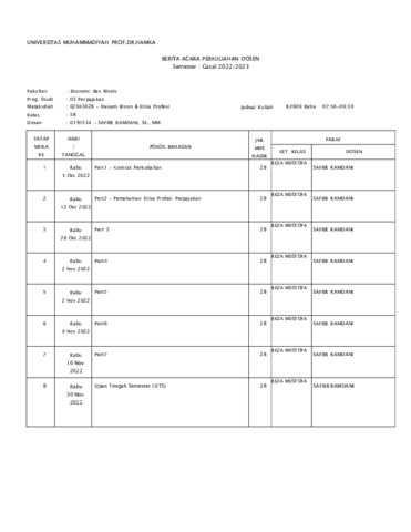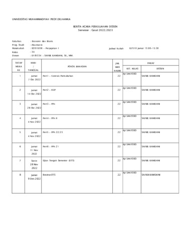 Safier Ramdani, Safier Daftar Pengajaran BKD Ganjil 2022 2023. Uhamka.