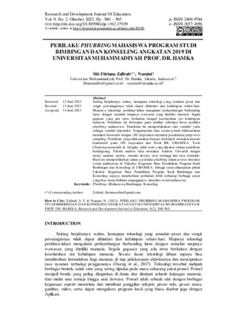 Nuraini, Nuraini (2023) Perilaku Phubbing Mahasiswa Program Studi Bimbingan dan Konseling angkatan 2019 di Universitas Muhammadiyah Prof. DR. Hamka. Perilaku Phubbing Mahasiswa Program Studi Bimbingan dan Konseling angkatan 2019 di Universitas Muhammadiyah Prof. DR. Hamka, 9 (2). pp. 560-565. ISSN 2657-1056